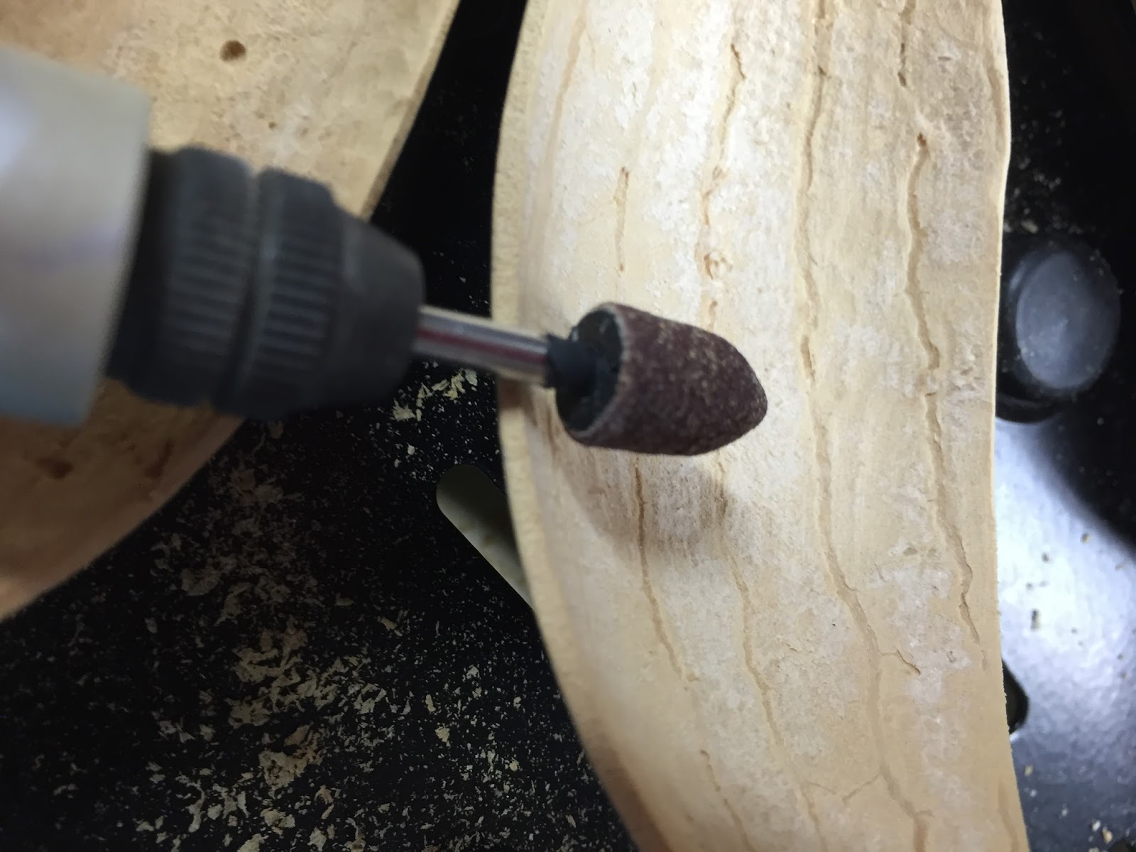 And made sure that I had the insides all cleaned out once they were opened up. Once the shapes were cut and cleaned I used the new Proxxon Sanding Drum and the Proxxon Rotary Tool with the flexshaft that I received to smooth off the edges and the insides.