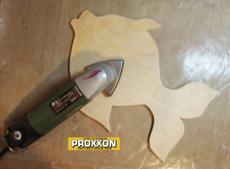 I painted the fish with Plaid FolkArt Coastal Texture Paints in High Tide, Largo Blue and Seal Grey, blending the colors together.