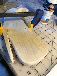 Now with the teeth all inserted you can glue the mouth to the whale body. Let dry then sand.