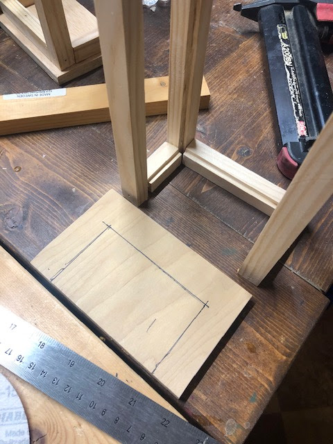 - Cut the square base and exterior of the large ring on the bandsaw.